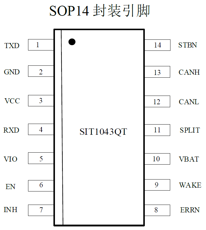 隨著全球變暖,低碳發(fā)展與新能源結(jié)構(gòu)轉(zhuǎn)型成為全球發(fā)展趨勢,在此背景之下促使新能源汽車持續(xù)釋放。隨著當(dāng)今汽車電子系統(tǒng)的復(fù)雜性日益增加,對于電動新能源汽車在不增加汽車部件成本的基礎(chǔ)上,提升電動汽車的能效及安全性提上日程。在此背景之下,芯力特電子在第一代SIT1040與第二代SIT1042CAN芯片基礎(chǔ)之上,研發(fā)出第三代高速CAN總線收發(fā)器SIT1043Q通信芯片,用以解決車載CAN通信同時,還實現(xiàn)CAN網(wǎng)絡(luò)診斷、故障安全保護(hù)、超低功耗睡眠等功能。與此同時SIT1043Q在電磁兼容(EMC)性能上有顯著提高,獨立HS-CAN收發(fā)器+低功耗管理+網(wǎng)絡(luò)診斷保護(hù) 解決方案,這使汽車制造商在提升整車系統(tǒng)性能、產(chǎn)品質(zhì)量和可靠性的同時,也大大降低了汽車整個網(wǎng)絡(luò)的能耗。以下是SIT1043Q芯片引腳分布及功能: