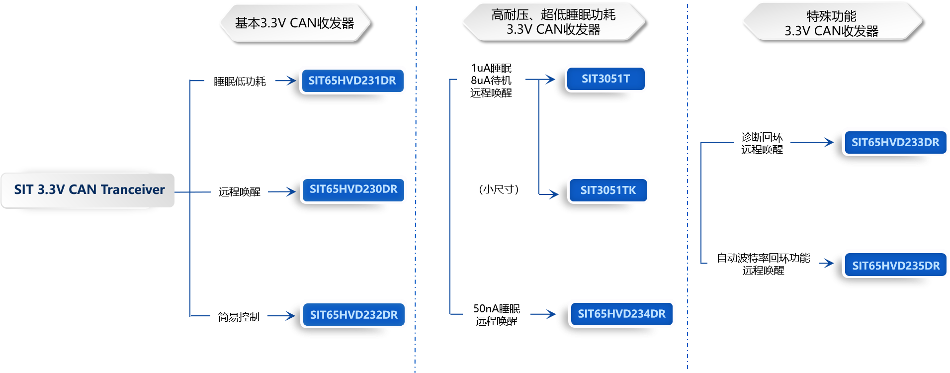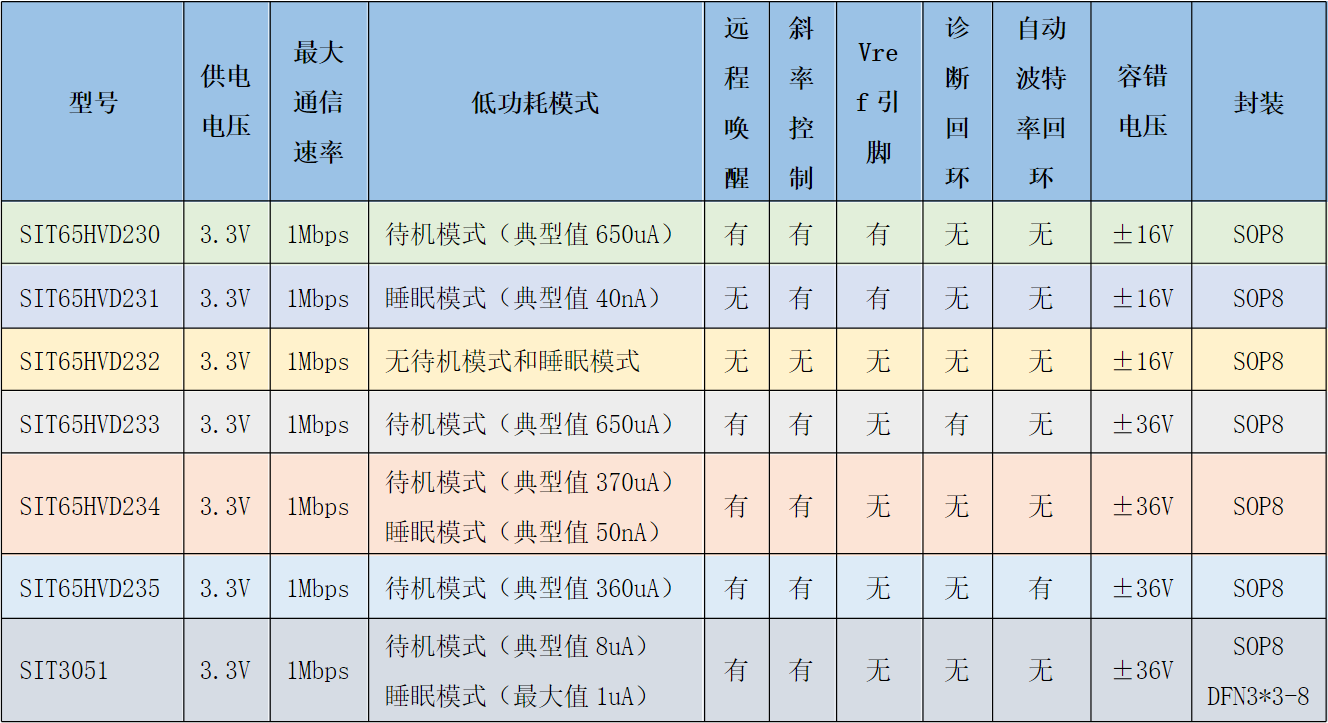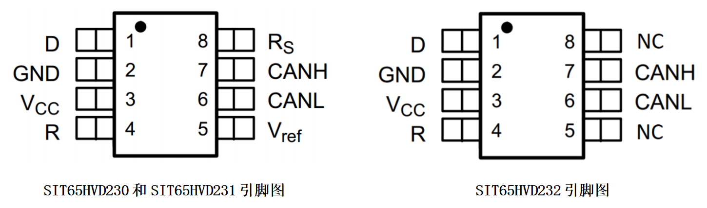 芯力特3.3V單電源CAN收發器主要有SIT65HVD23x系列(SIT65HVD230-235)和SIT3051系列;如下圖1: