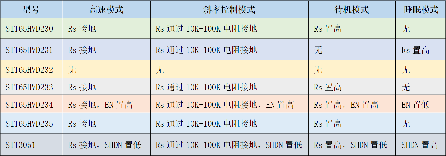 表2 芯力特3.3V CAN收發器系列芯片模式切換表