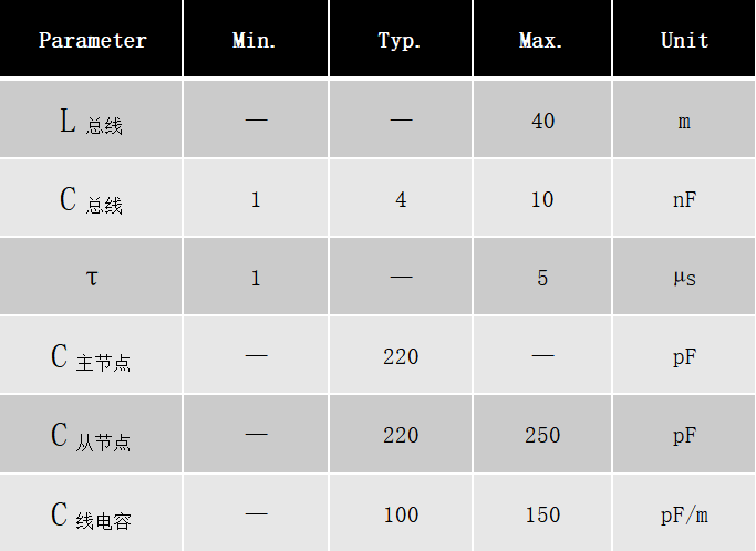 C總線 = C主節點 + n × C從節點 + C線電容 ×L總線