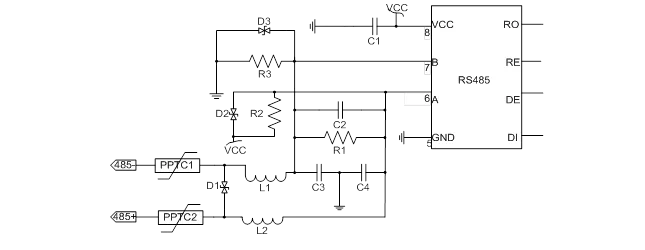 RS485通訊接口芯片廣泛應用于各種智能儀表上,采用RS485接口的智能儀表不僅可以實現點對點的通信方式,還可以實現聯網功能,RS485為遠程抄表提供了最可靠的抄表方式。RS485接口芯片的應用非常廣泛,應用環境各有不同,而智能儀表、工業控制等現場環境時常非常惡劣,RS485通訊端口需要做好靜電防護、雷擊浪涌防護、以及380V市電接入防護等,以避免智能儀表、工控主機的損壞。本文介紹幾種典型的RS485端口防護電路。