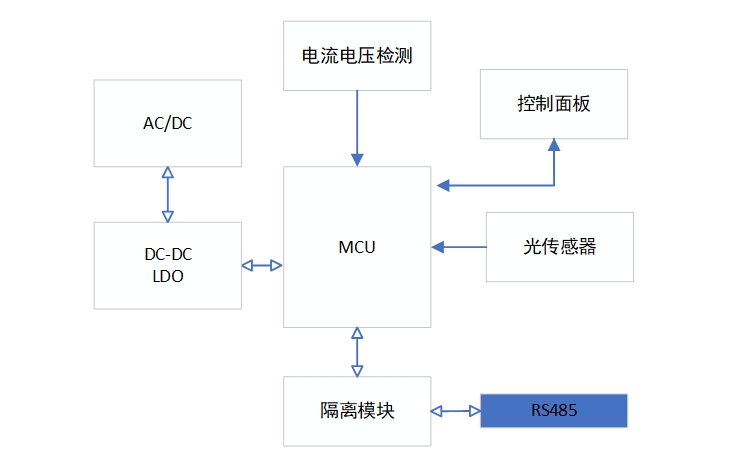 通過RS485總線將MCU信號傳輸到其他節點控制燈光。